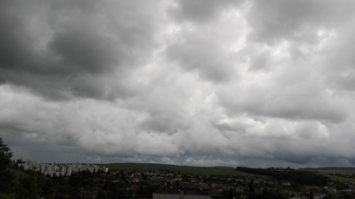...při zemi občasný vánek, na obloze poměrně rychle střídající se oblačnost (8/10) od V - JV včetně srážkové...