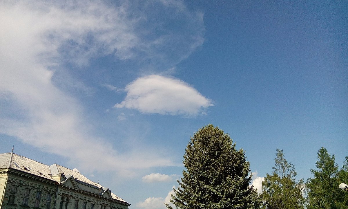 Slabý vítr,tlak 1017 hPa,od severu jde bouřka.