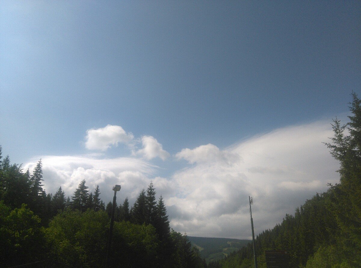 Oproti ránu oblačnosti přibylo, tlak 1017,7 hPa, vlhkost 80, SV vítr 2-4 m/s.