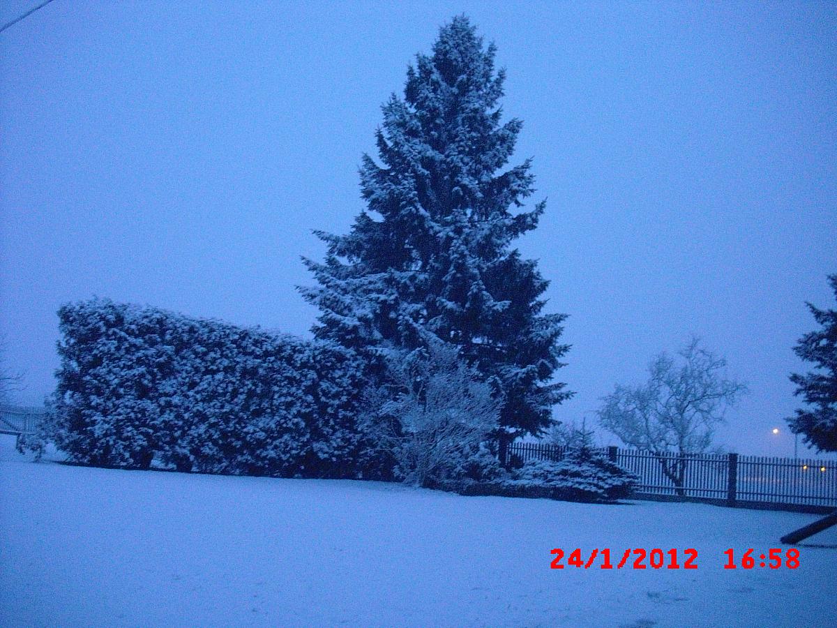 A ještě zasněžené smrčky u nás na zahradě. :)