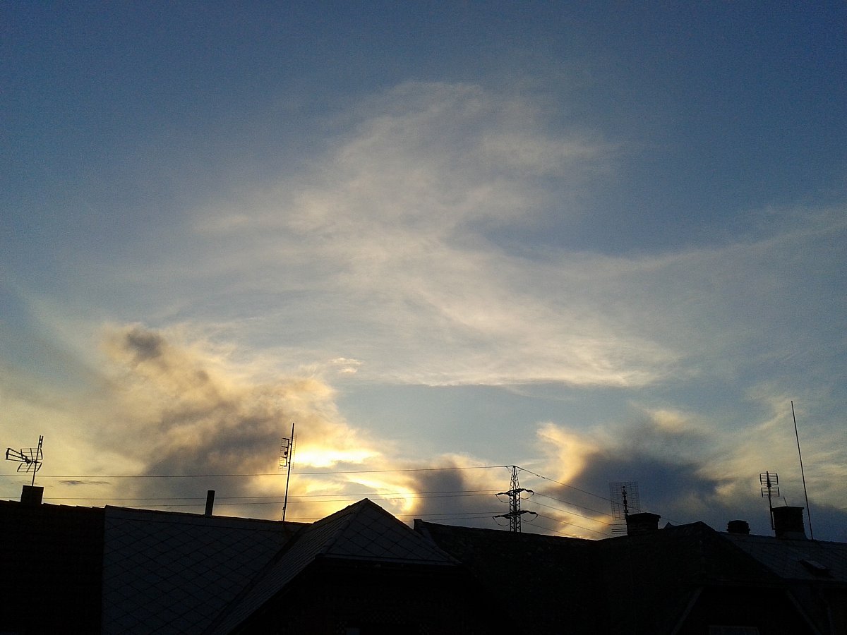Vánek,tlak 1015,vlhkost 42%,západ Slunce do vysoké oblačnosti.