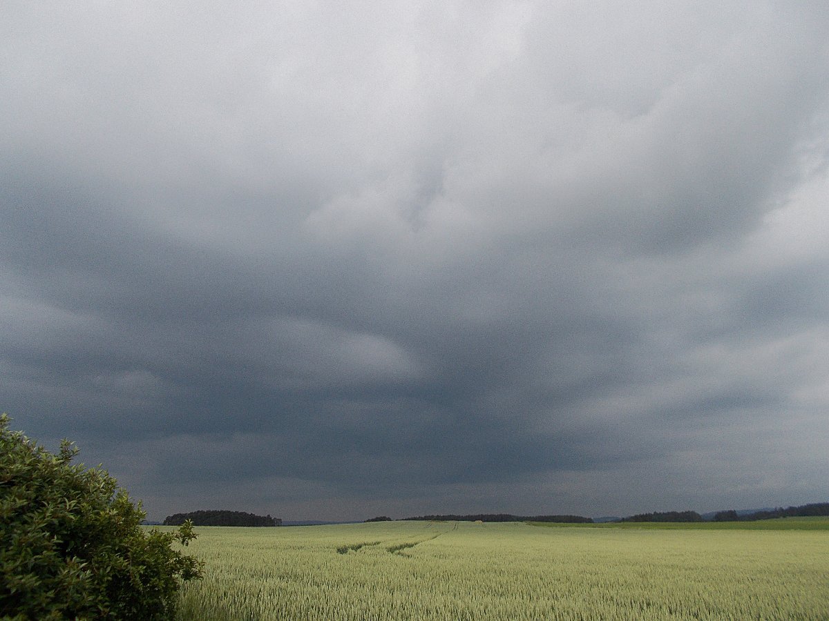 ... oslepující, žnoucí slunce, bezvětří, opárek nad kopečky, oblačnost 3/10 pouze vysoká...