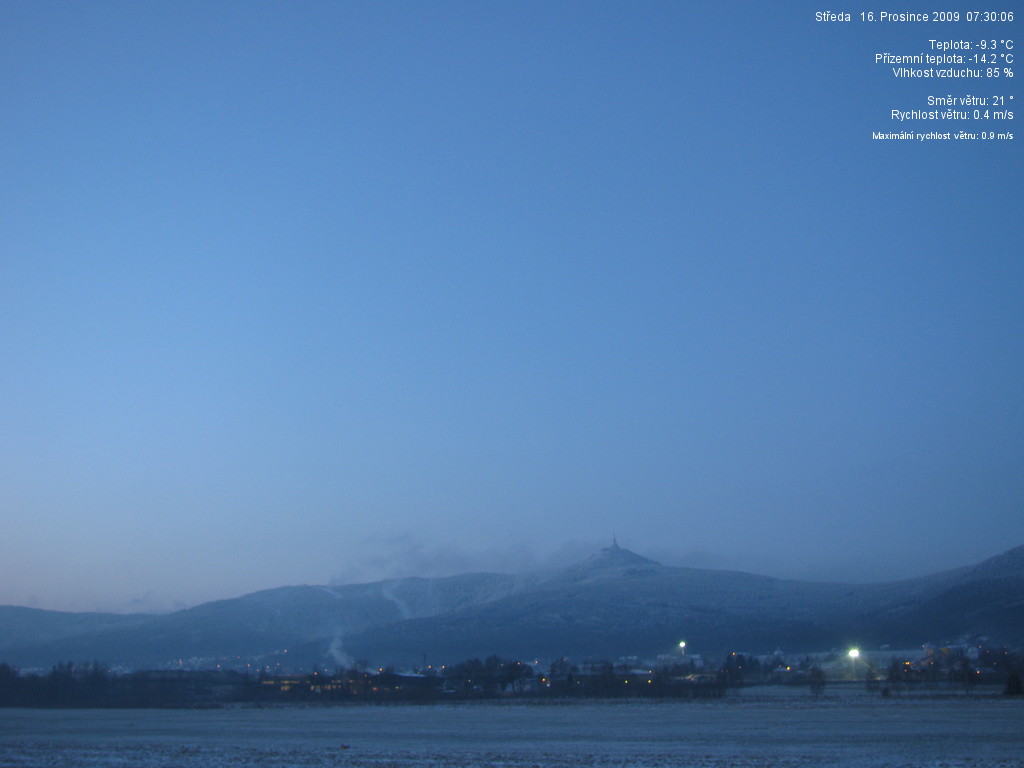 Omlouvám se u minulého počasí jsem dal omilem špatnou fotku.... Teď opravuji s aktuální..... Zataženo,-5.4 stupňů,76% vlhkost,vítr 4.6 m/s.....