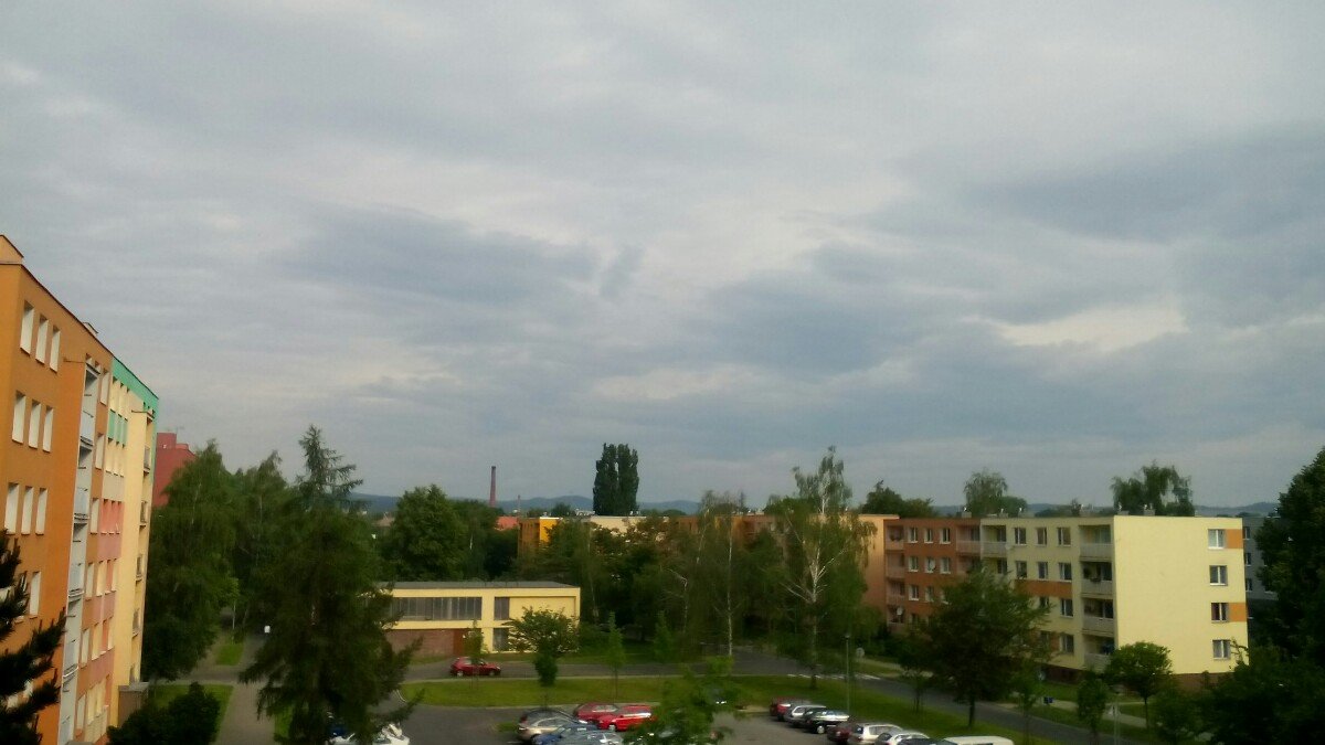 Oblačnost 77,7%, zákl.oblačnosti 767,09m.n.m., tlak 1004,7hPa↓, dohlednost 35km, rel.vlhkost 89,9%, abs.vlhkost 13,43g/m3, SSZ větřík 339° 3,1m/s(2 Bft), poc.teplota 17,32°C, ochl.větrem 17,49°C, tepl.ros.bodu 15,81°C, teplota mraků 14,41°C, délka dne u nás = 16hod.9min.45vt.