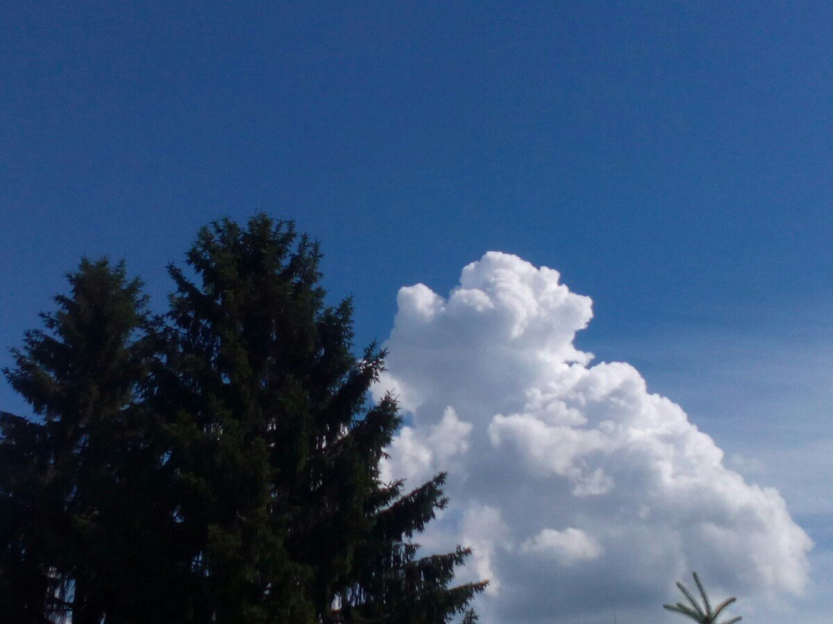 Hezké počasí. Kolem poledne nás zasáhla velmi slabá dešťová přeháňka,nyní je polojasno a velmi příjemně. Vítr vane jen slabý západní, tlak 999 hPa.