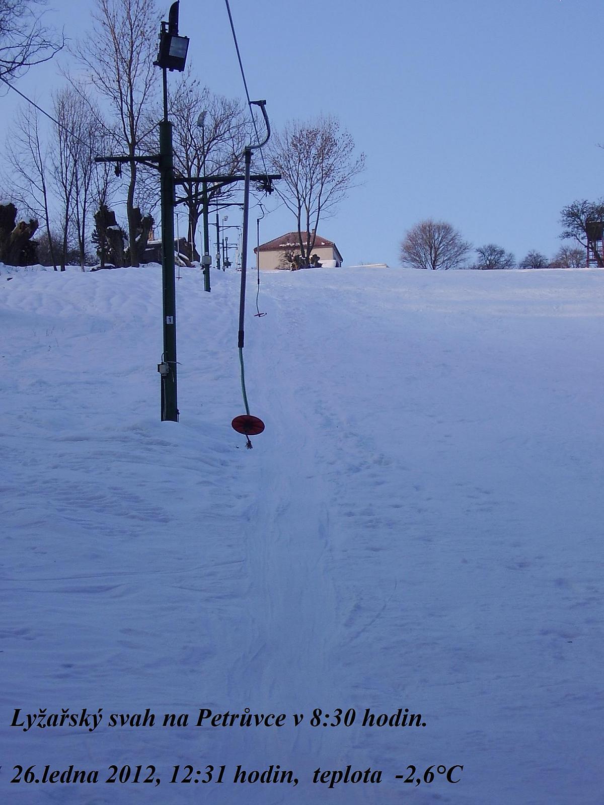 Jasno ,semtam mráček a obrázek zasněženého Zajíčkova a v dáli je rozhledna na Křemešníku. je tam i sjezdovka.