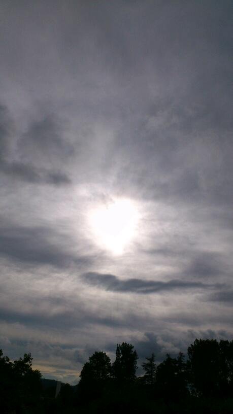 Zajímavý tvar oblačnosti, která přes nás přešela směrem ze západu ... trvalý déšť na jihu ustal kolem poledne, nyní už jen lokální dešťové přeháňky.