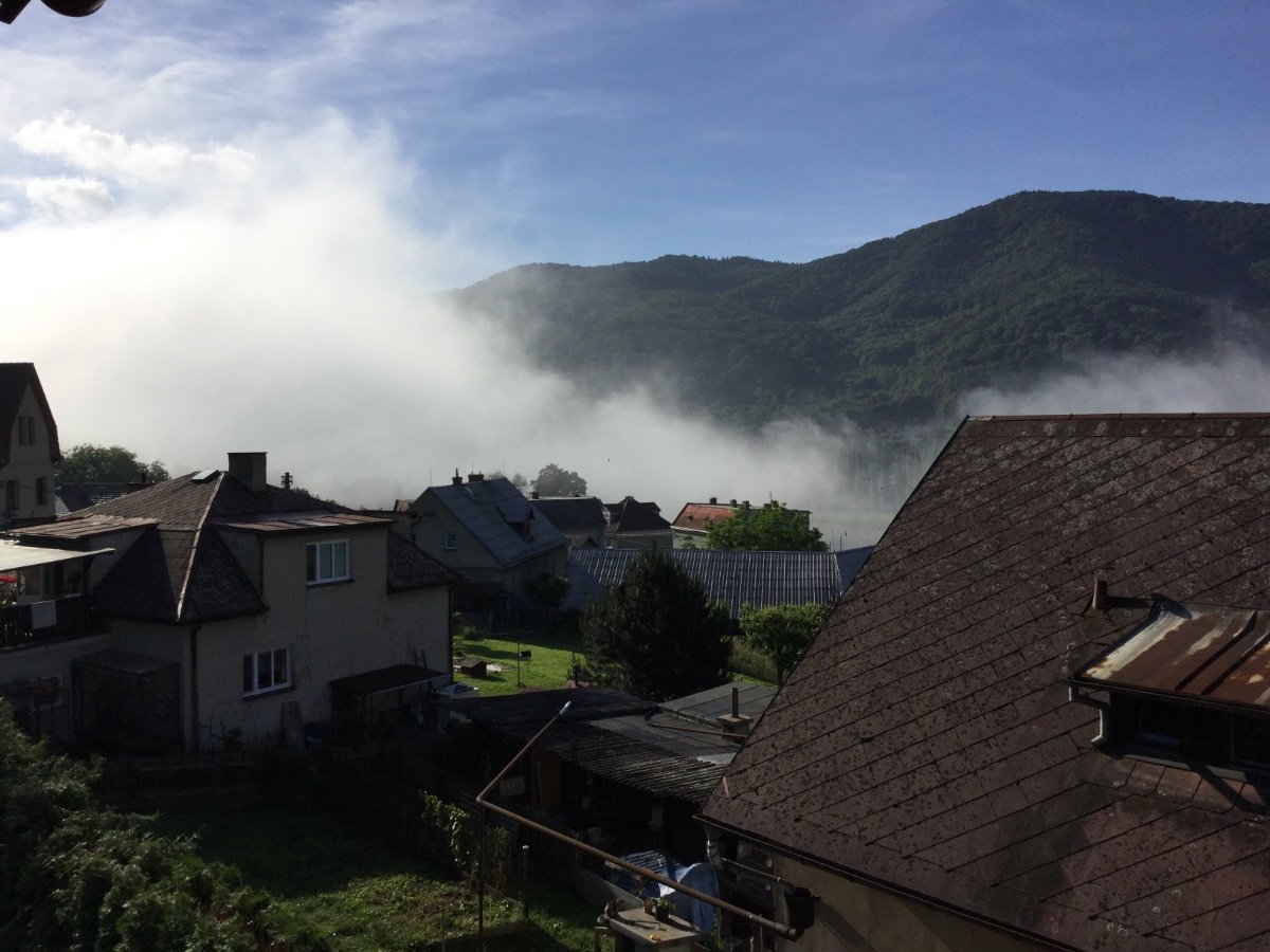 Jihovýchodní větřík, tlak 1004,6 hPa a vlhkost 77 %.