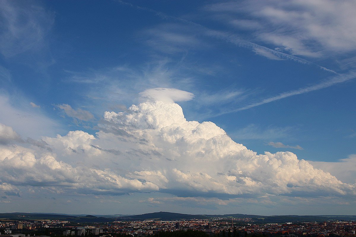 Tlak 1001,4 hPa, vlhkost 70 %, JV vítr 5-10 m/s s nárazy.