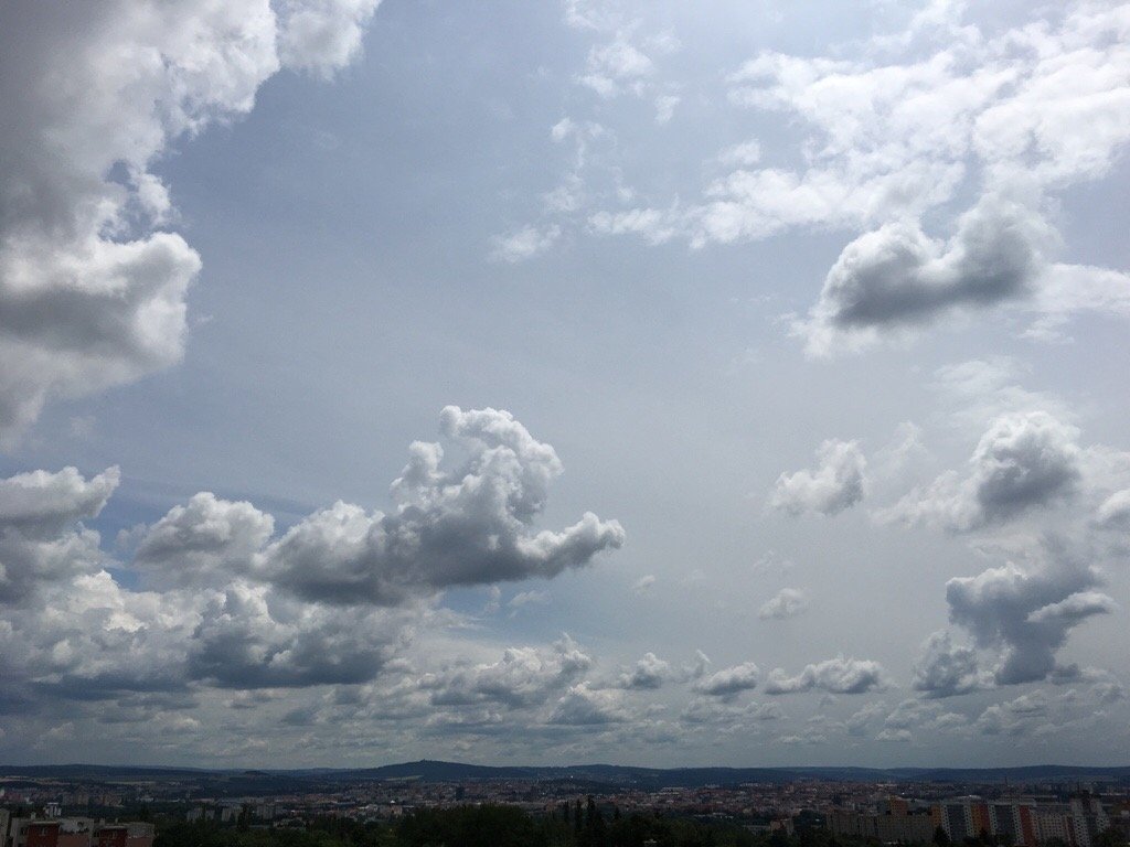 Skoro zataženo, severní slabý vítr, tlak 1018,4 hPa a vlhkost 61 %.