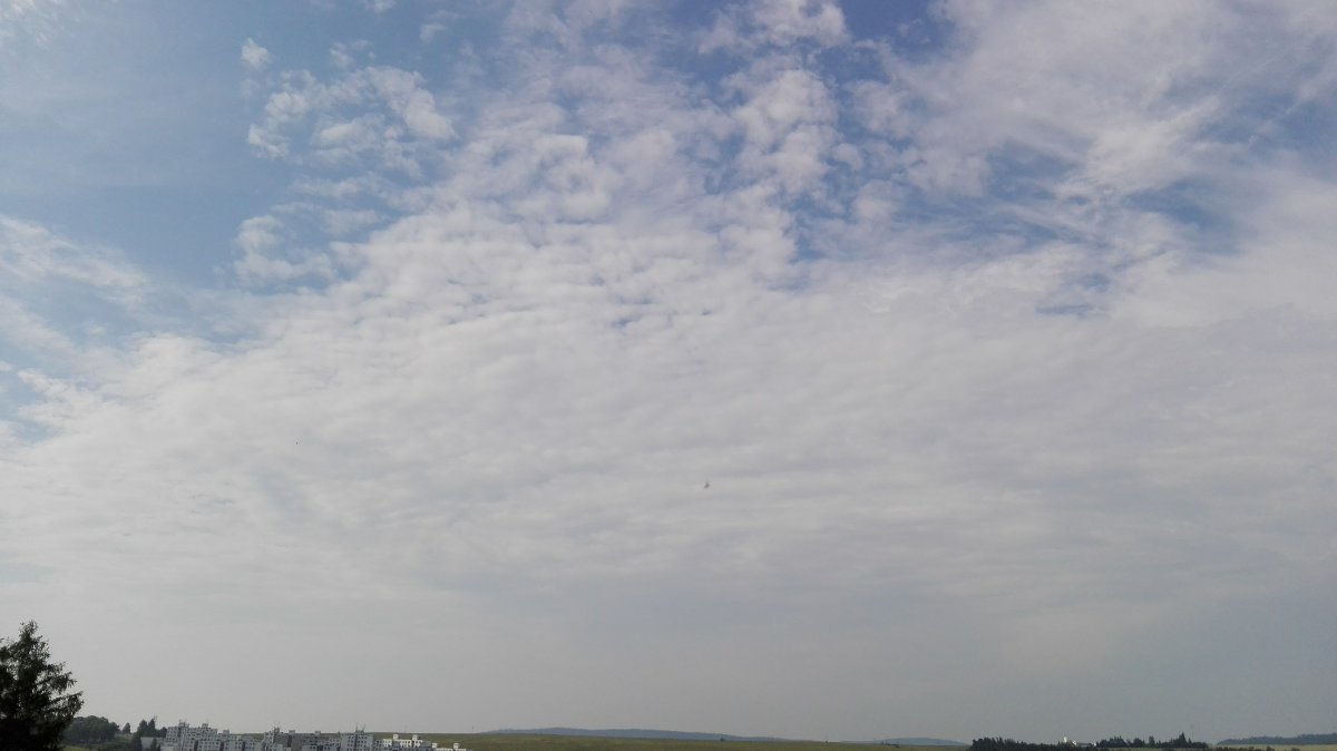 Oblačnost 3,3%, zákl.oblačnosti 1253,46m.n.m., tlak 1016,4hPa↓, dohlednost 30km, rel.vlhkost 79,7%, abs.vlhkost 20,45g/m3, mírný V vítr 92° 6,3m/s(4 Bft), poc.teplota 27,77°C, ochl.větrem 28,68°C, tepl.ros.bodu 23,07°C, tepl.mraků 20,78°C, délka dne u nás = 16hod.10min.53vt.