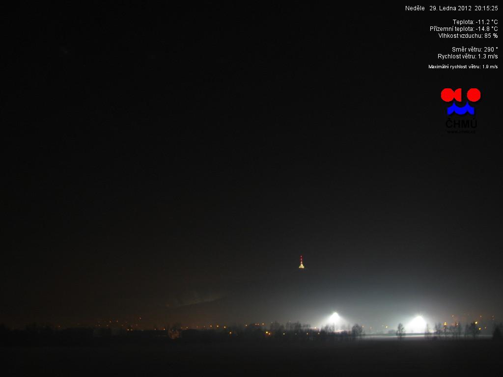 Jasno, bezvětří, tlak 1035,3 hPa, vlhkost 77,6%, viditelnost 11km. Zatím nejnižší teplota u nás.