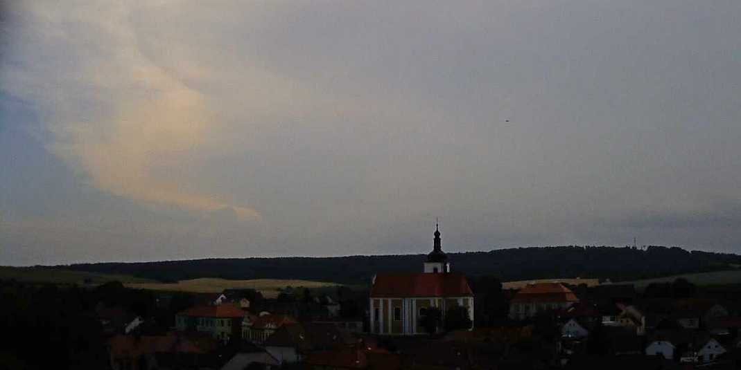 Od západu nasouvání oblačnosti. Jiho-jihovýchodní mírný vítr, tlak 1008,4 hPa a vlhkost 58 %.