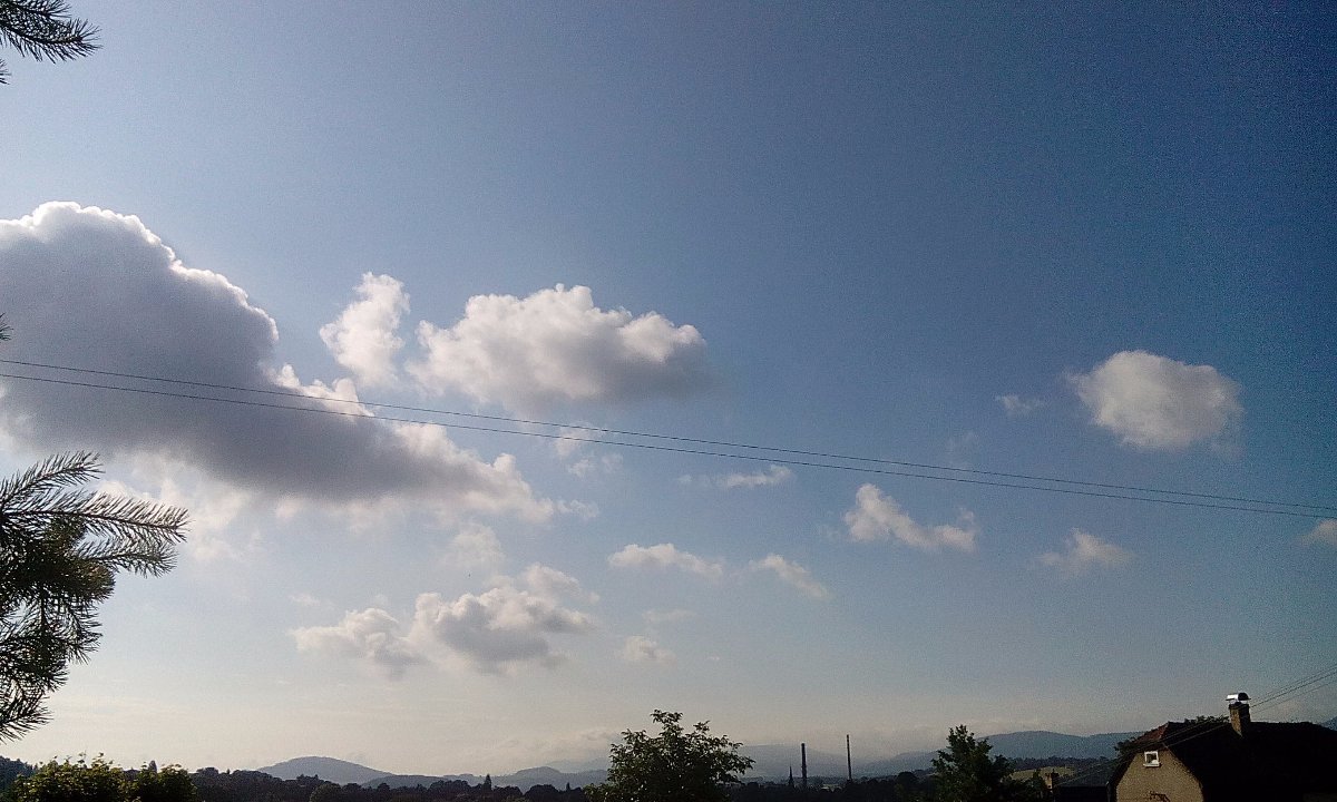 v noci slabá bouřka 2 mm srážek, tlak 1017 hPa, klidno
