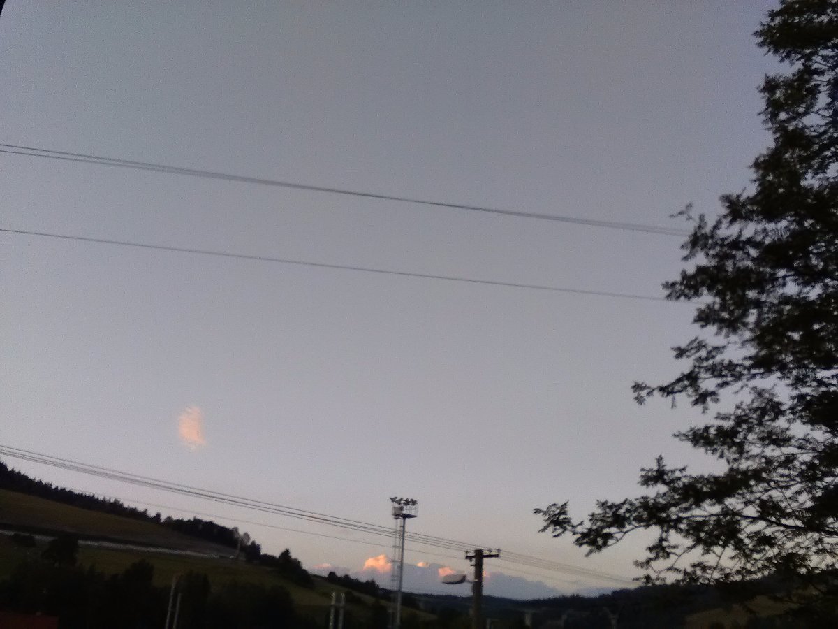 Klidno,tlak 1021 hPa,vlhkost 47%.pohled k západu.