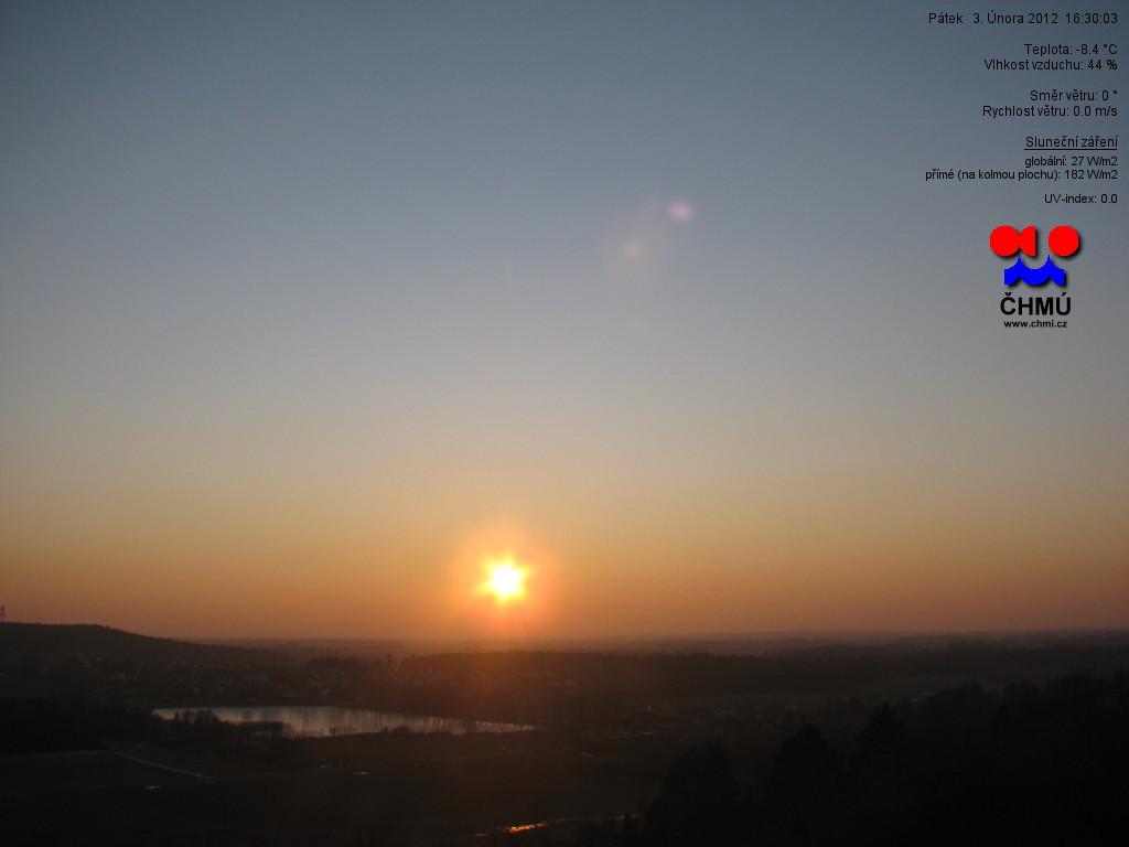 Aktuální teplota: -10,4°C, přízemní teplota: -15,9°C, vlhkost vzduchu: 55%, rychlost větru 1,2 m/s