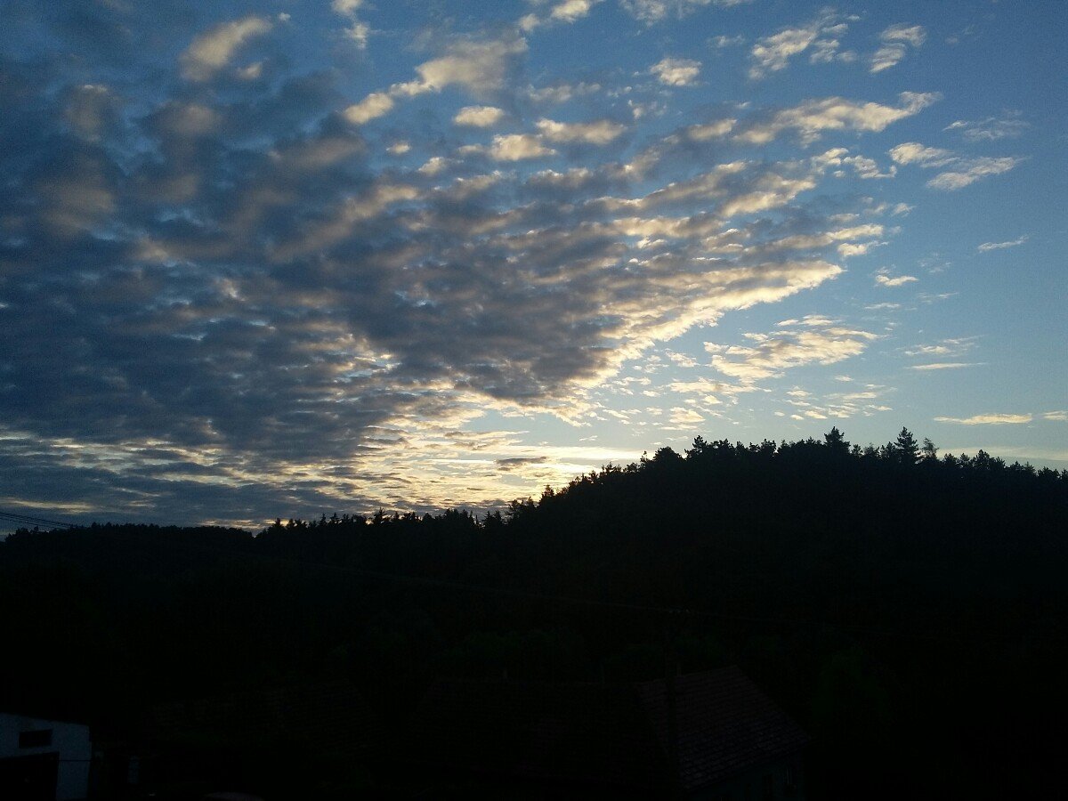 Tlak 1019 hPa, vítr SZ .