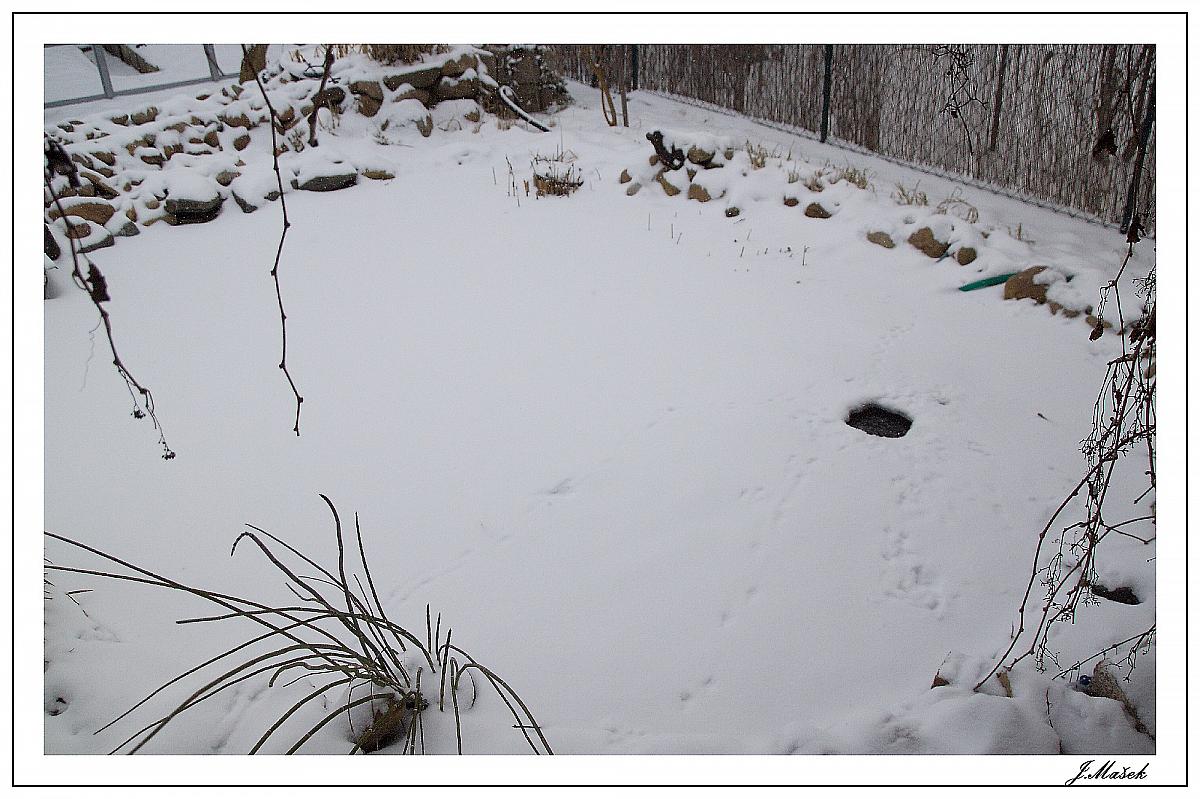 v 1 hodinu v noci začalo jemně chumelit, ráno jsem měli konečně trochu sněhu - fotka pořízena dnes v 8:37 teplota byla -10°