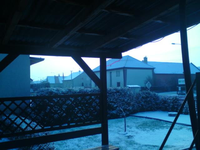 Přes noc napadlo asi 5cm sněhu, teď už jen poletuje, nádhera:-)