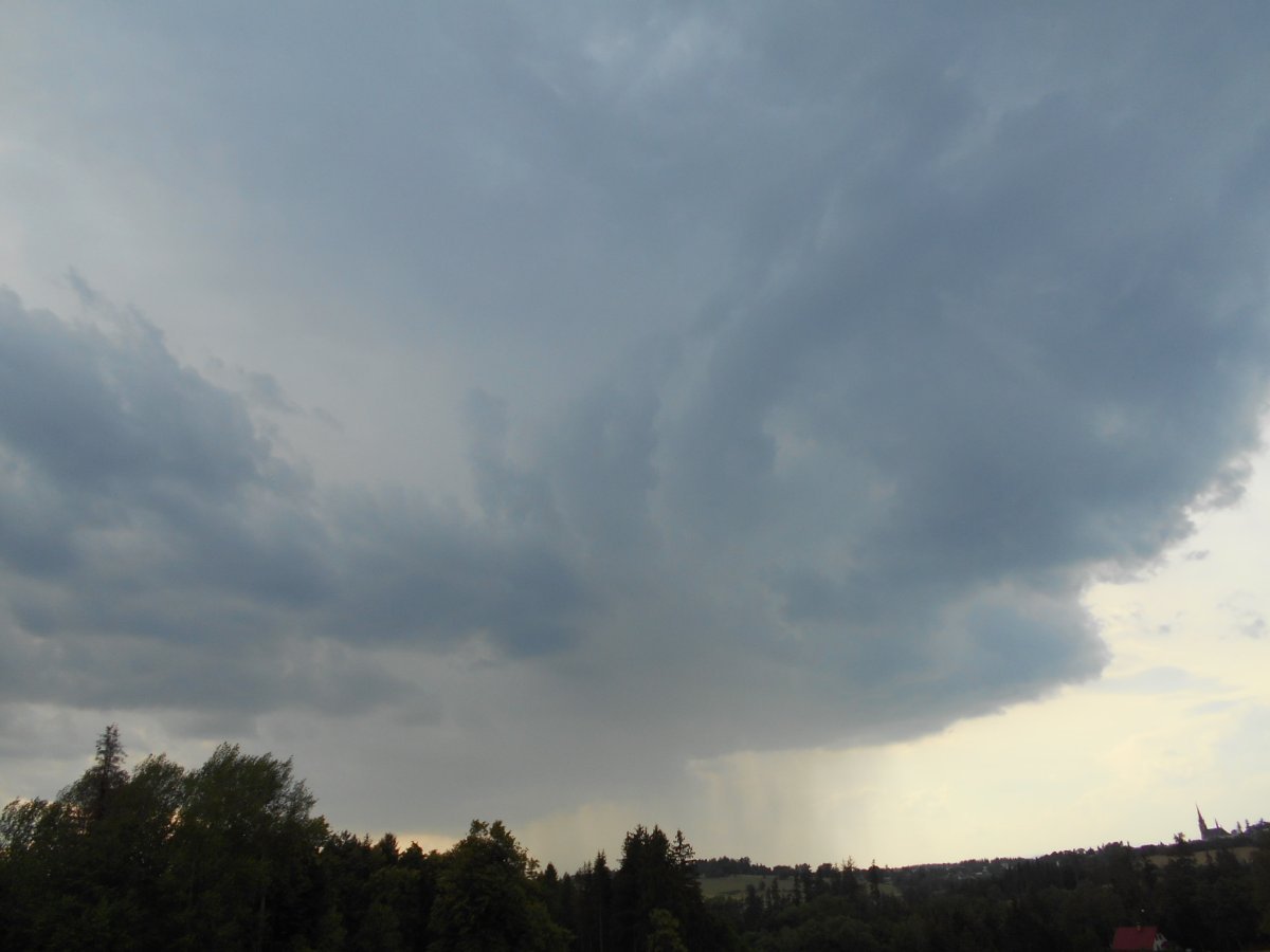Od jihozápadu se nasouvá další, tentokráte však pořádně mohutný bouřkový komplex. V Klatovech začíná pršet a bouří zatím nad Šumavou...