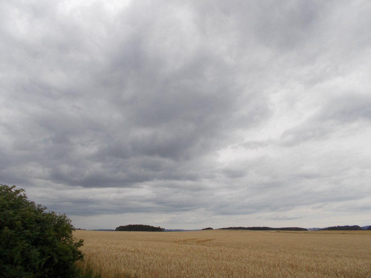 Po polojasném dopoledni se zatáhlo a od jihu se blíží srážky. Je bezvětří, tlak: 1010 hPa.