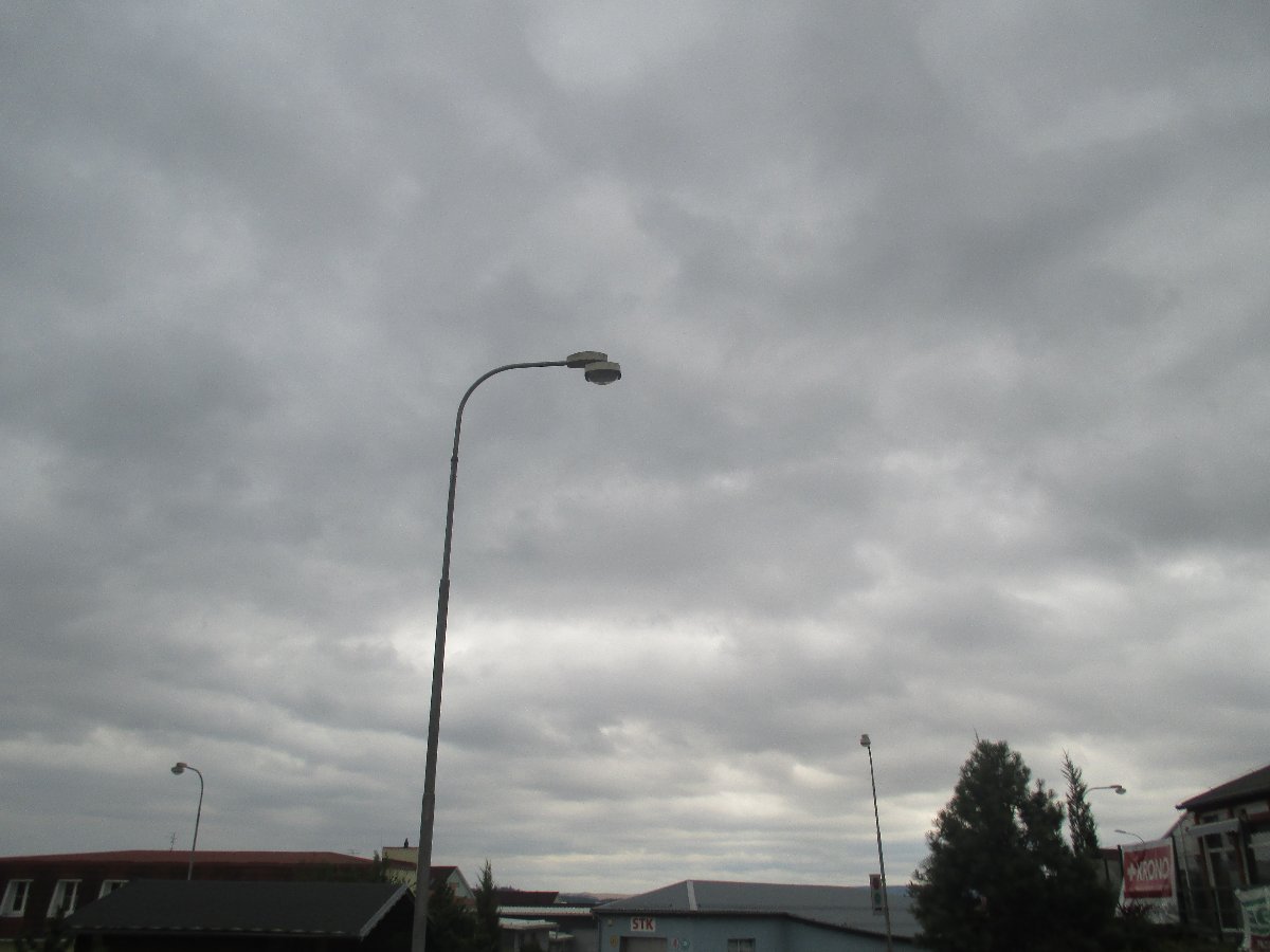 Prší(1mm/hod.), oblačnost 99,7%, zákl.oblačnosti 1433,33m.n.m., dohlednost 10km, rel.vlhkost 74,1%, abs.vlhkost 9,81g/m3, slabý SSZ vítr 333° 5,3m/s(3 Bft), poc.teplota 12,12°C, ochl.větrem 14,39°C, tepl.ros.bodu 10,88°C, teplota mraků 8,27°C, ozon 334D.U.(-3%,normální stav), délka dne u nás = 15hod.41min.36vt.