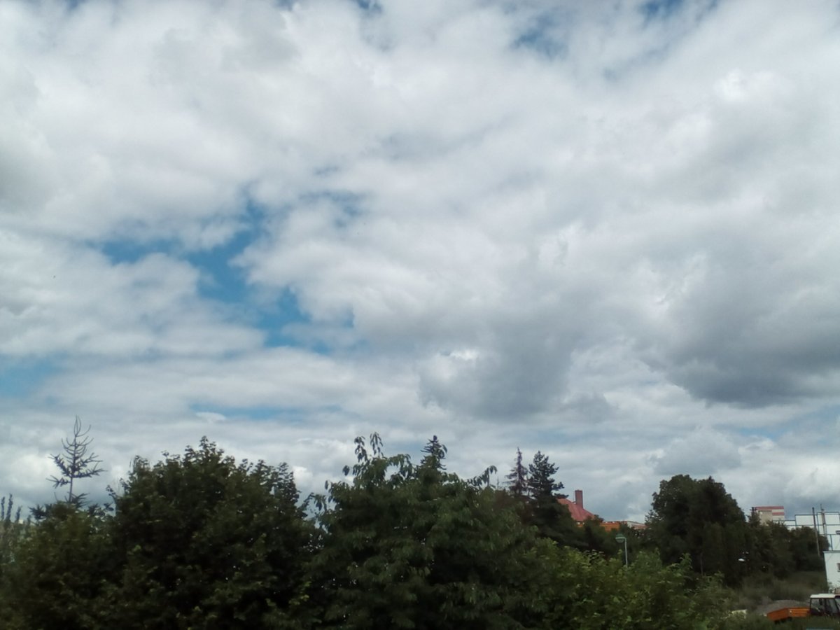 ... velmi zvolna v parném bezvětří se sunoucí, přibývájící a rostoucí kupovitá oblačnost (6/10) od SZ ...