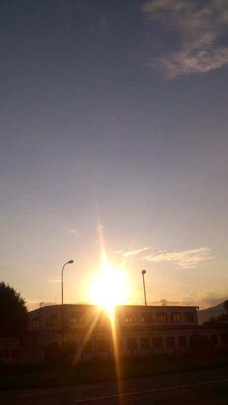 ... rosa jak trdlo, padající hustá mlha za městem, bezvětří a ještě ospalé sluníčko souká prstíky přes jediné obláčky na východním obzoru...