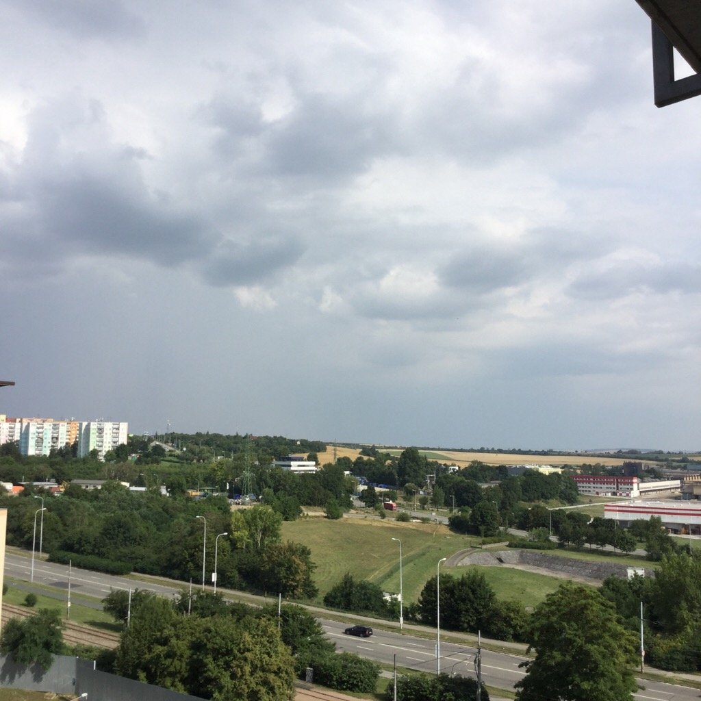 Asi pred hodinou byla slaba prehanka s velkyma kapkama. Tet je polojasno a vitr vane slaby.