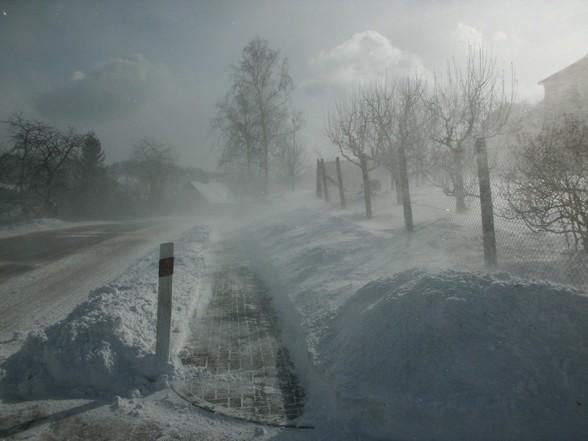 A ještě jedna fotka z dopoledního silnějšího sněžení v kombinaci silného větru.Vítr okolo 10m/s v nárazech 15m/s.