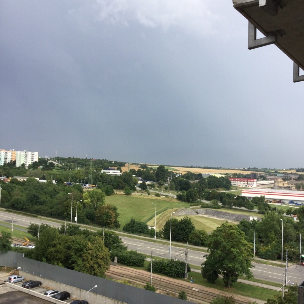 Velmi silná a prudká bouře s kroupami právě přešla... Všude proudy vody...