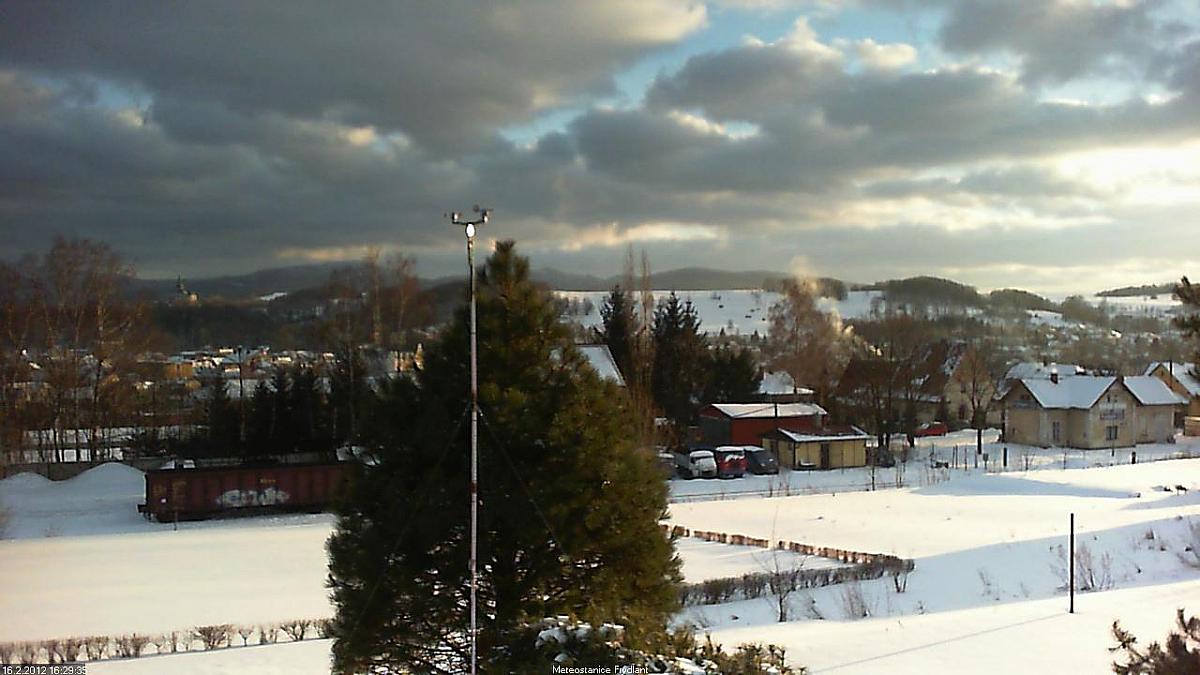Zataženo 8/8, sněží, vítr SSZ 339° 4,7m/s, vlhkost 91,2%, viditelnost 1km, zákl.mraků 462m.