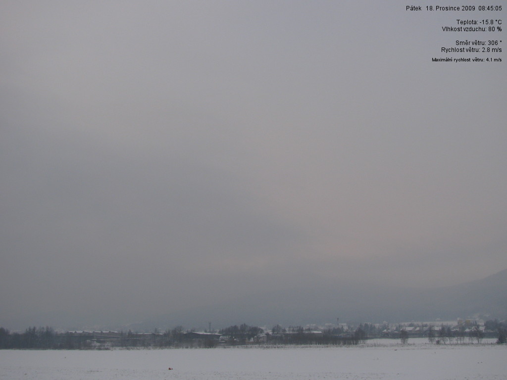 Zataženo,-10.7 stupňů,vlhkost 90 %,vítr 2.0 m/s.... Už je pěkne mrazivvo,je ale škoda že zatím nepřiadl žádný nový sníh.......