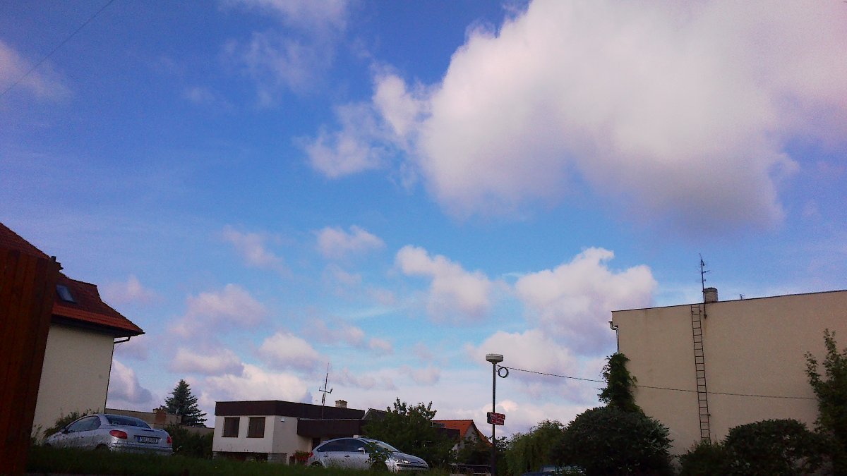 vlhkost 91%, tlak 1016,3 hPa / Svítí sluníčko avšak obloha se začíná čím dál tím víc zatahovat.