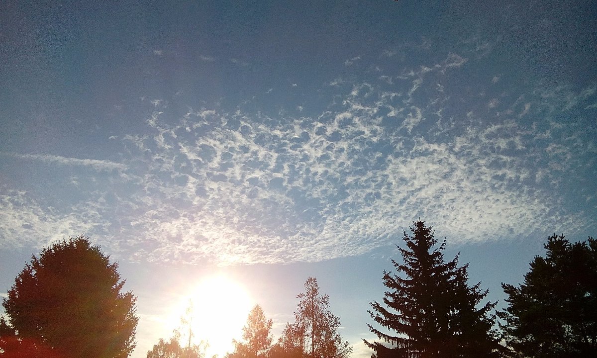 ... na východě pármráčkové azurové sluníčkové skorojasno, nad hlavou beránkové polojasno a ze západu se pomalu plíží zataženo v mnoha odstínech šedi, neorosené, chladné, bezvětrné svítání...