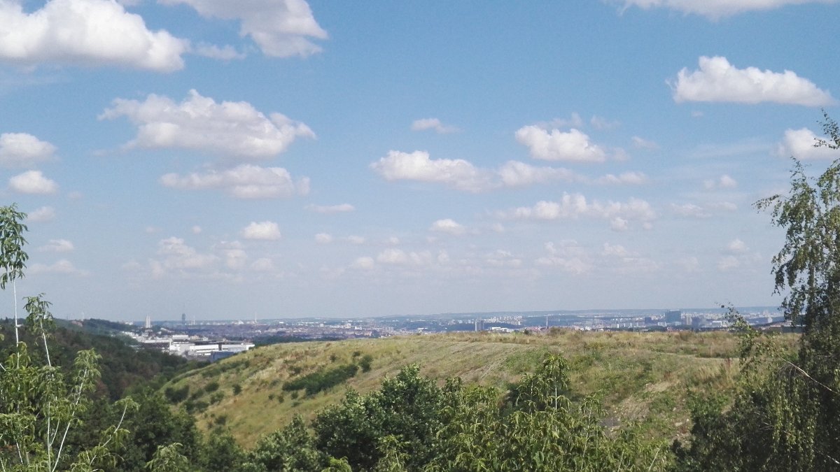 V kopcích vane již poměrně čerstvý vítr, v dolíku na Hracholuskách jen mírný větřík. Voda krásných 24 stupňů...