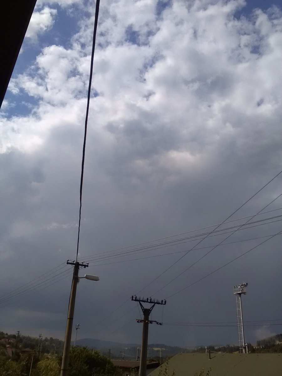 Slabý déšť, slabý vítr, tlak 1018 hPa slabý vzestup.