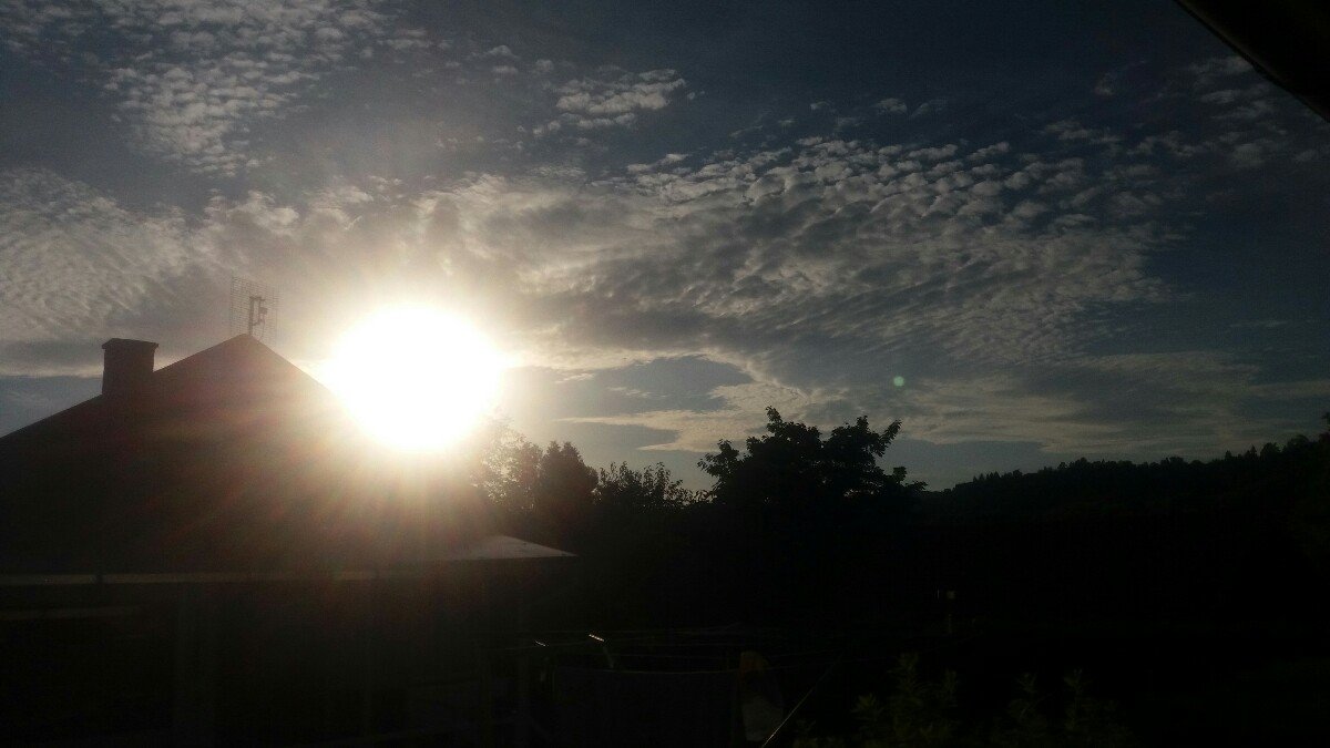 Po zataženém dni na teplé frontě rychle ubyla oblačnost a je krásný večer. Tlak: 1022 hPa, vítr slabý jihovýchodní.