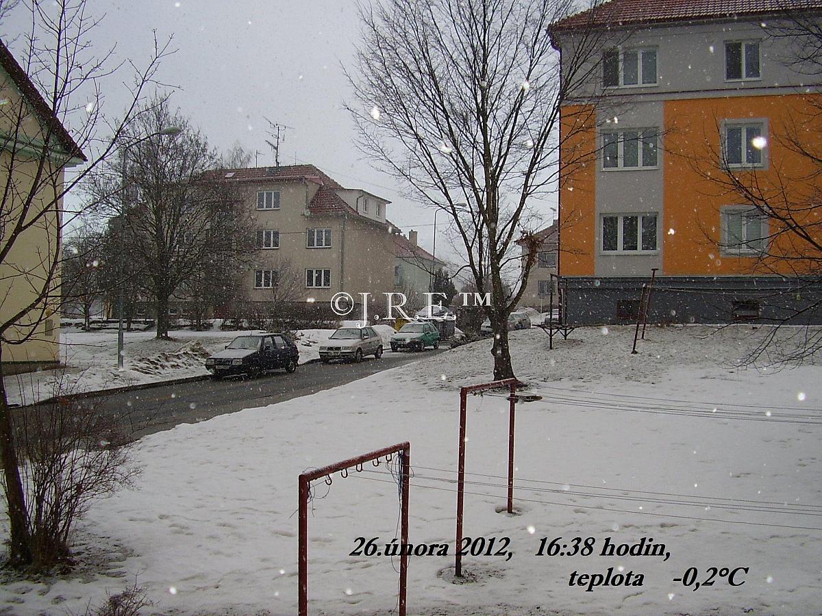 Zataženo 7/8, sněhové přeháňky, tlak 1015,1hPa, vlhkost 74,8%, viditelnost 9km, vítr VSV 68° 3,6m/s, zákl.mraků 749m.