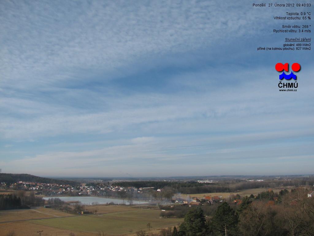 Skoro jasno 1/8, tlak 1021,5hPa, vítr SSV 14° 7km/hod., vlhkost 66,6%, viditelnost 15km, zákl.mraků 893m.