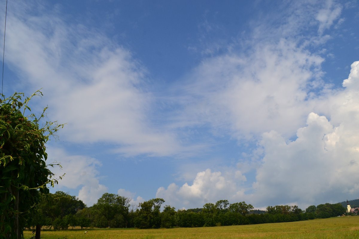 Občas slabě poprchá, tlak 1011,2 hPa, slabý proměnlivý vítr.