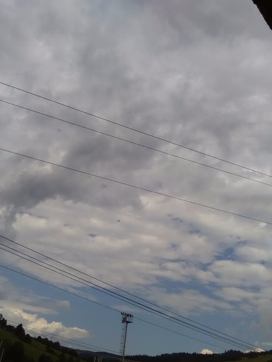 Oblačnost 98,8%, zákl.oblačnosti 2094,37m.n.m., tlak 1014,4hPa▲, dohlednost 30km, rel.vlhkost 62,9%, abs.vlhkost 13,48g/m3, slabý J vítr 171° 4,3m/s(3 Bft), poc.teplota 22,83°C, ochl.větrem 24,79°C, tepl.ros.bodu 16,17°C, tepl.mraků 12,36°C, ozon 315D.U.(-3%,podprůměrný stav), HUMIDEX 30 = nepohodlí.