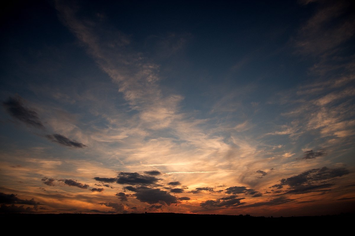 ... skorojasný západ slunce po teplém letním dnu beze srážek s jasným dopolednem, trochu mráčkově kupovitým odpolednem a odpo-top-teplotami lehce pod 30... bezesrážek, mírně větrno...