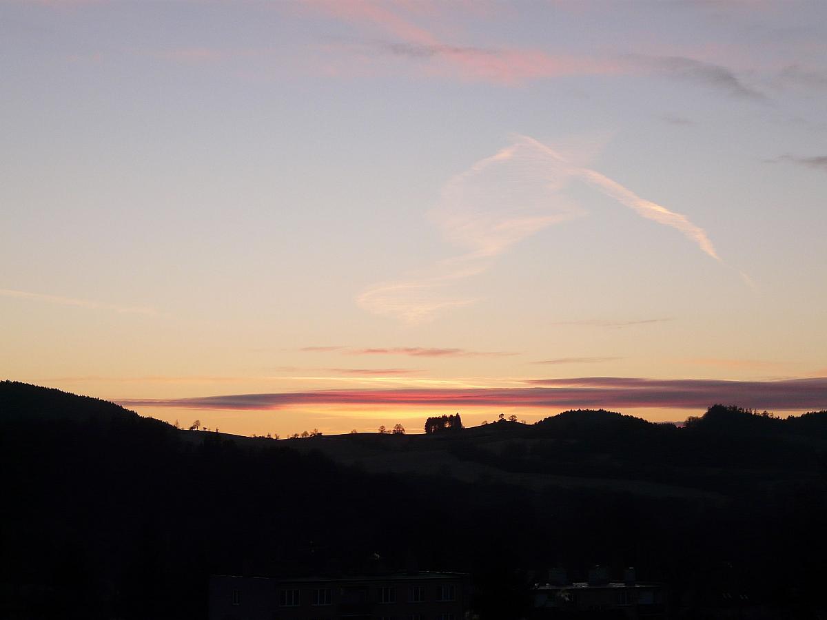 Zataženo 8/8, sněží asi od půl sedmé, ranní minimum -5,6°C, bezvětří, dohlednost 1km.