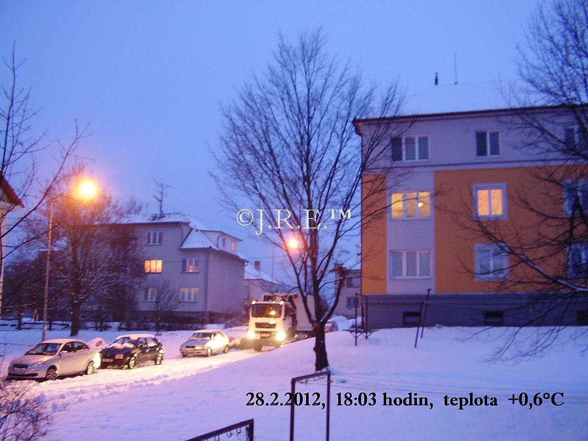 Zataženo 8/8, nepřetržitě sněží, teplota se motá kolem nuly, bezvětří.