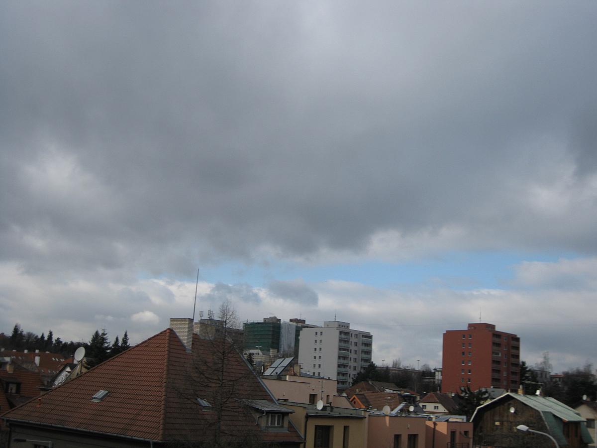 Oblačnost 3/8, tlak 1020,8hPa, vítr SSZ 342° 7,5m/s, viditelnost 20km, vlhkost 56,3%, zákl.mraků 1046m. Na slunci je hezkých +15,5°C. Sněhu už jsou jenom zbytky.