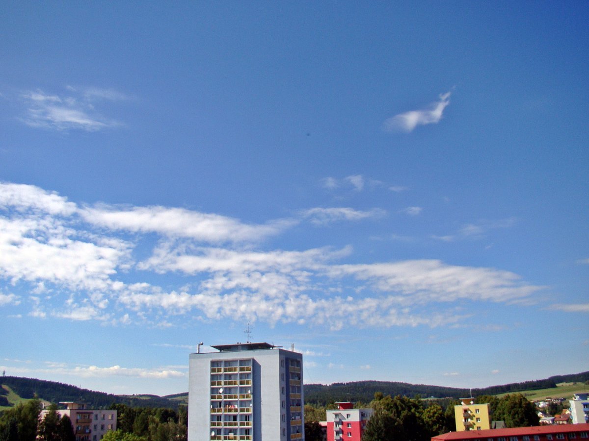 Na Z obzoru se objevuje po dvou dnech oblačnost, tlak 1018,2 hPa, vlhkost 51 %, slabý JV vítr.