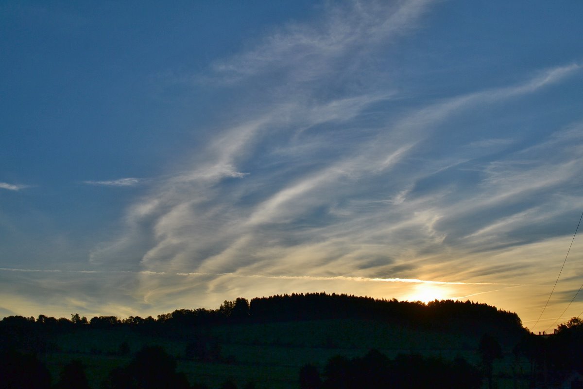... od západu pozvolna se sunoucí načepýřené čelo fronty patrně stihne přikrýt a nepustí nedělní probuzené prstíky sluníčka do našeho údolíčka, rosa, bezvětří...