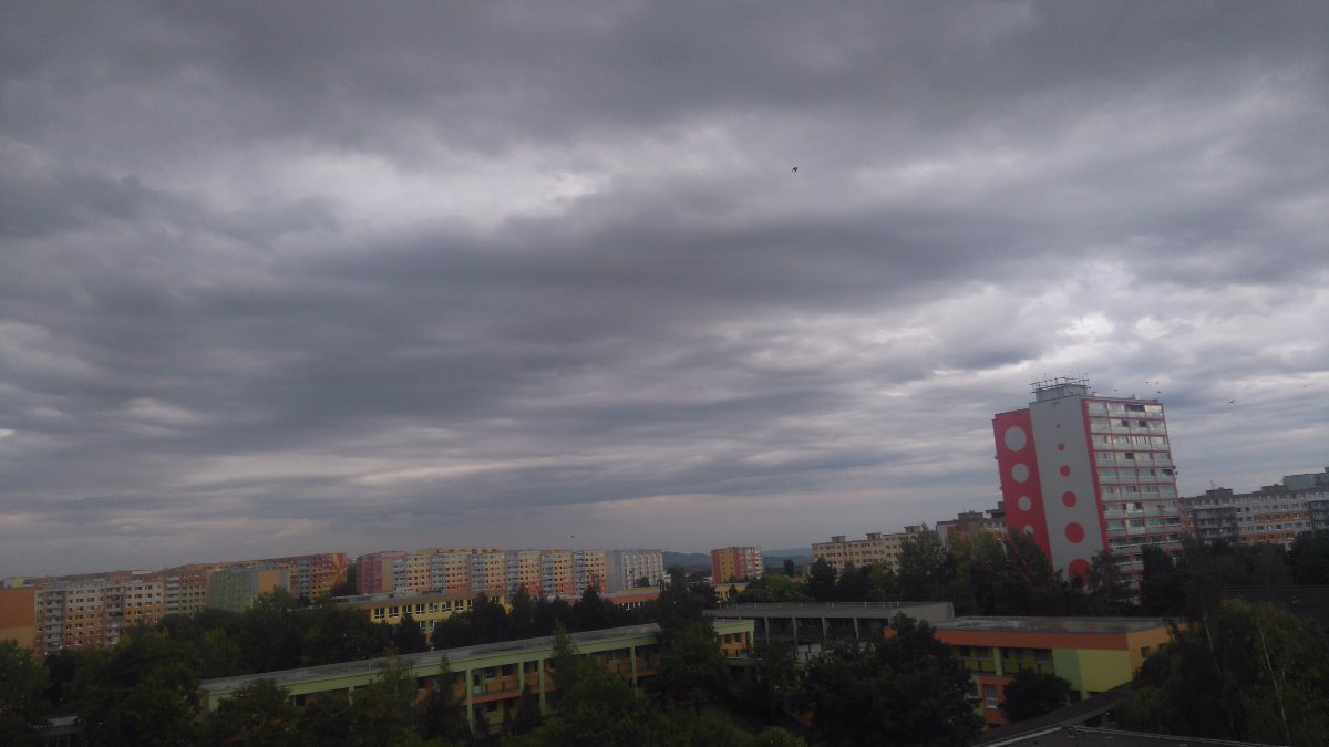 Severozápadní slabý vítr, tlak 1013,2 hPa a vlhkost 43 %.