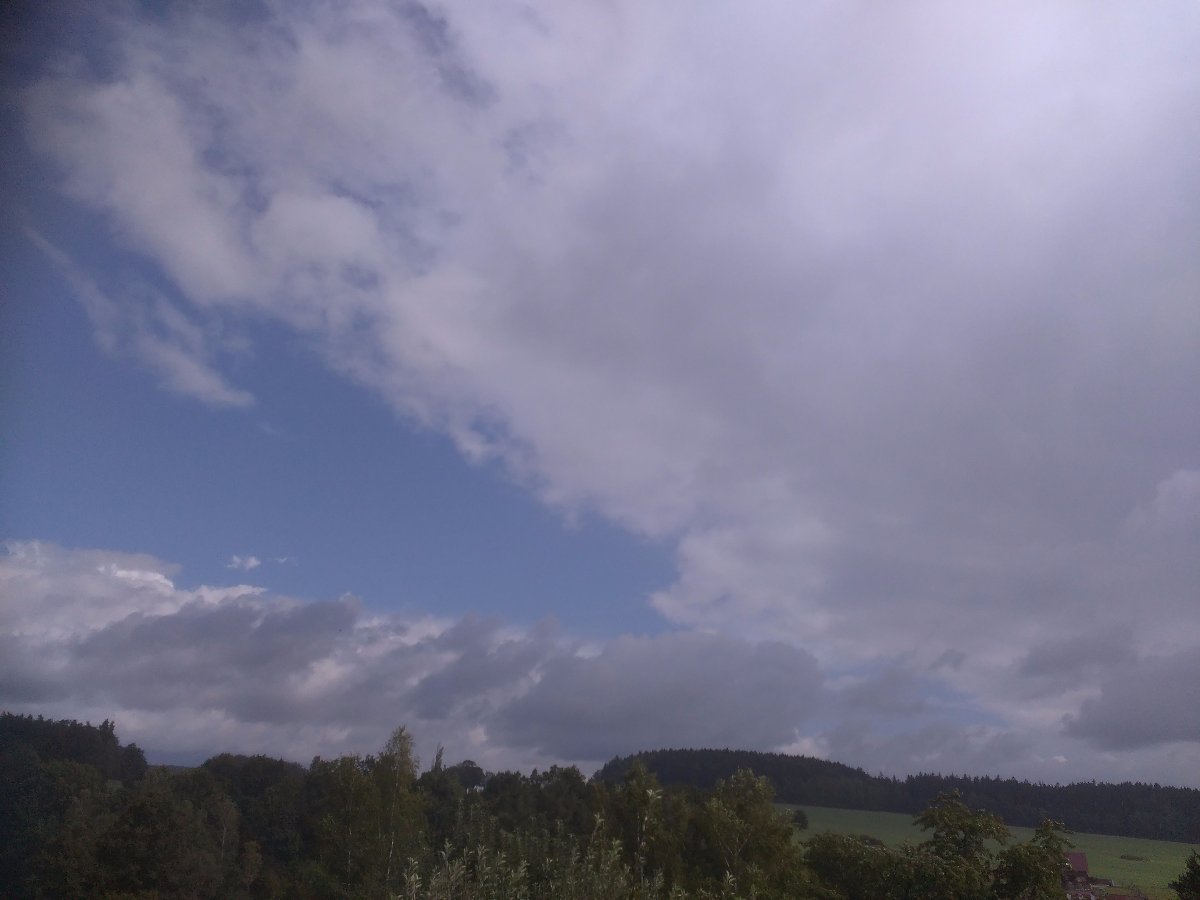 Slabá přeháňka, oblačnost 89,9%, zákl.oblačnosti 1635,37m.n.m., tlak 1013,8hPa→, dohlednost 13km, rel.vlhkost 70,7%, abs.vlhkost 12,10g/m3, mírný Z vítr 272° 7,1m/s(4 Bft), poc.teplota 16,29°C, ochl.větrem 19,52°C, tepl.ros.bodu 14,29°C, tepl.mraků 11,32°C, ozon 323D.U.(+3%,normální stav), HUMIDEX 25(přijatelná hodnota).